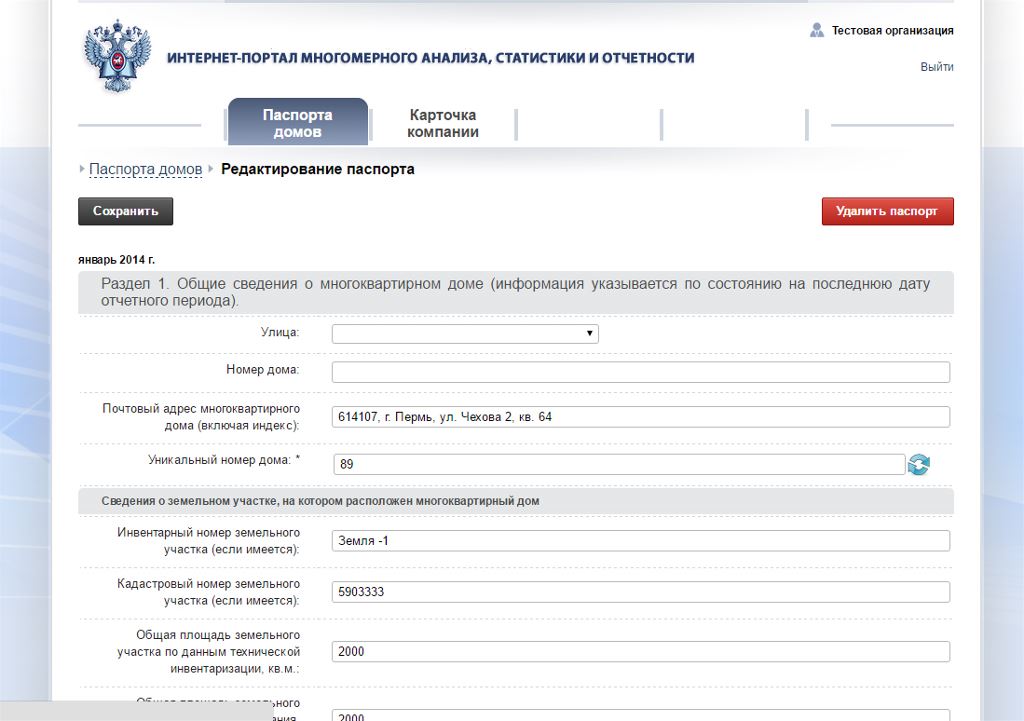 В рамках проекта производилась разработка программного обеспечения для ведения «Электронных паспортов» в соответствии с требованием статьи 165 Жилищного кодекса Российской Федерации и постановления Правительства Российской Федерации от 28 декабря 2012 г. №1468 «О порядке предоставления органам местного самоуправления информации лицами, осуществляющими поставки ресурсов, необходимых для предоставления коммунальных услуг, и (или) оказывающими коммунальные услуги в многоквартирных и жилых домах либо услуги (работы) по содержанию и ремонту общего имущества собственников помещений в многоквартирных домах».