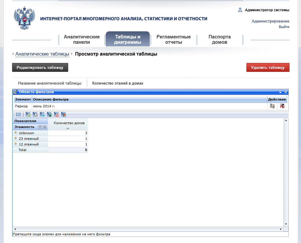 Для вывода аналитических данных в виде OLAP таблиц использовались компоненты RadarCube.