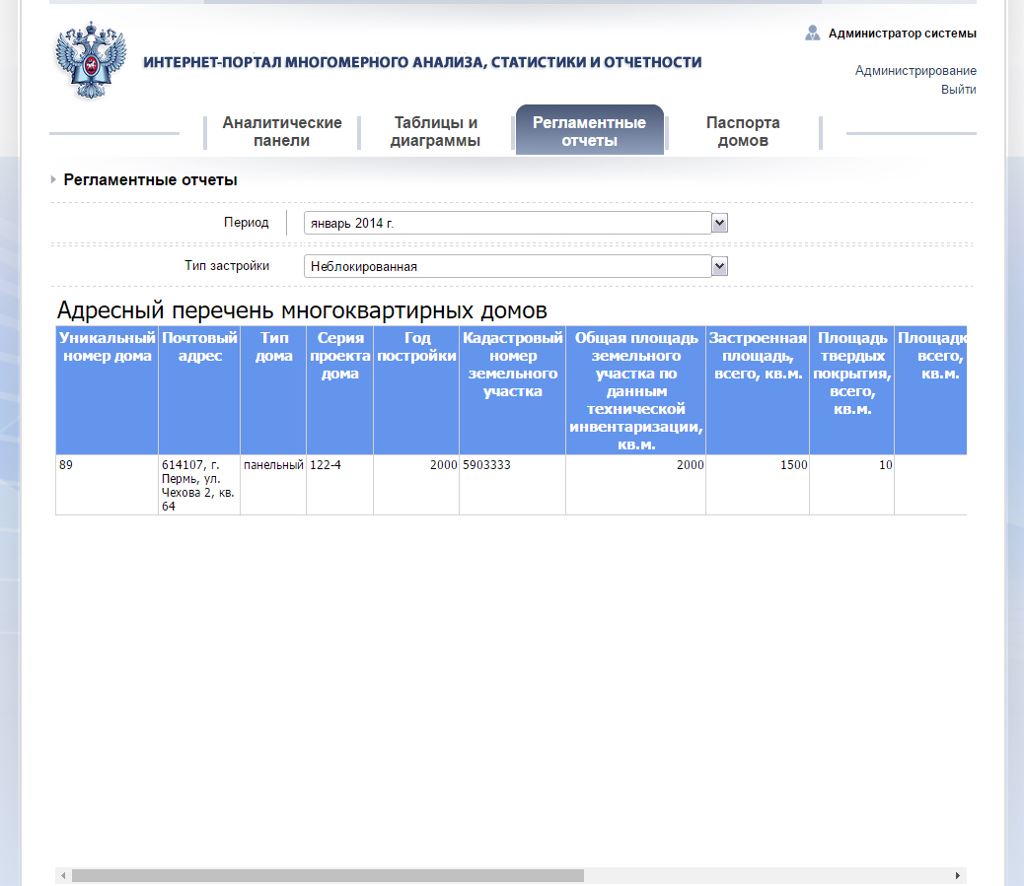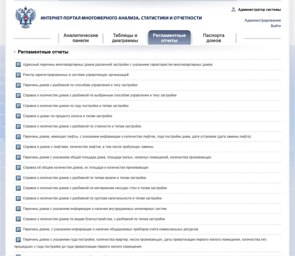 В системе реализована подсистема сбора отчетности с многоквартирных домов для ее дальнейшей обработки.