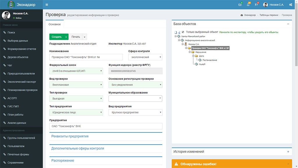 Программное обеспечение для контрольно-надзорной деятельности имеет все необходимые функции: